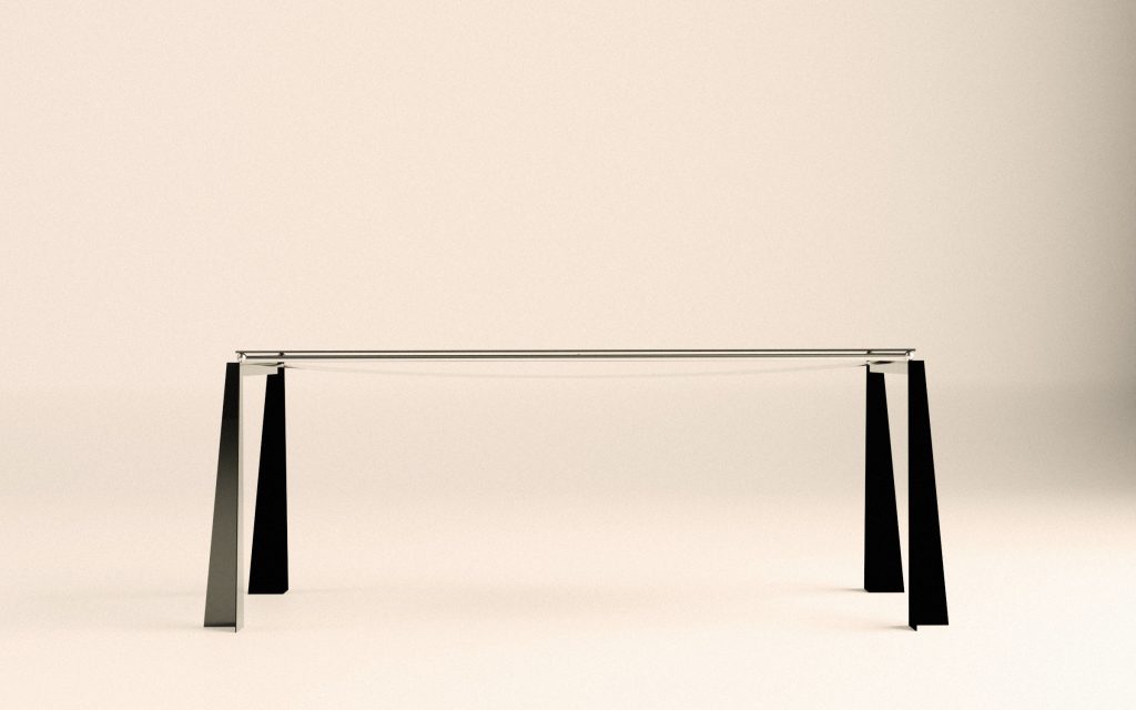 Acier, inox miroir, verre fumé et laque brillante minérale